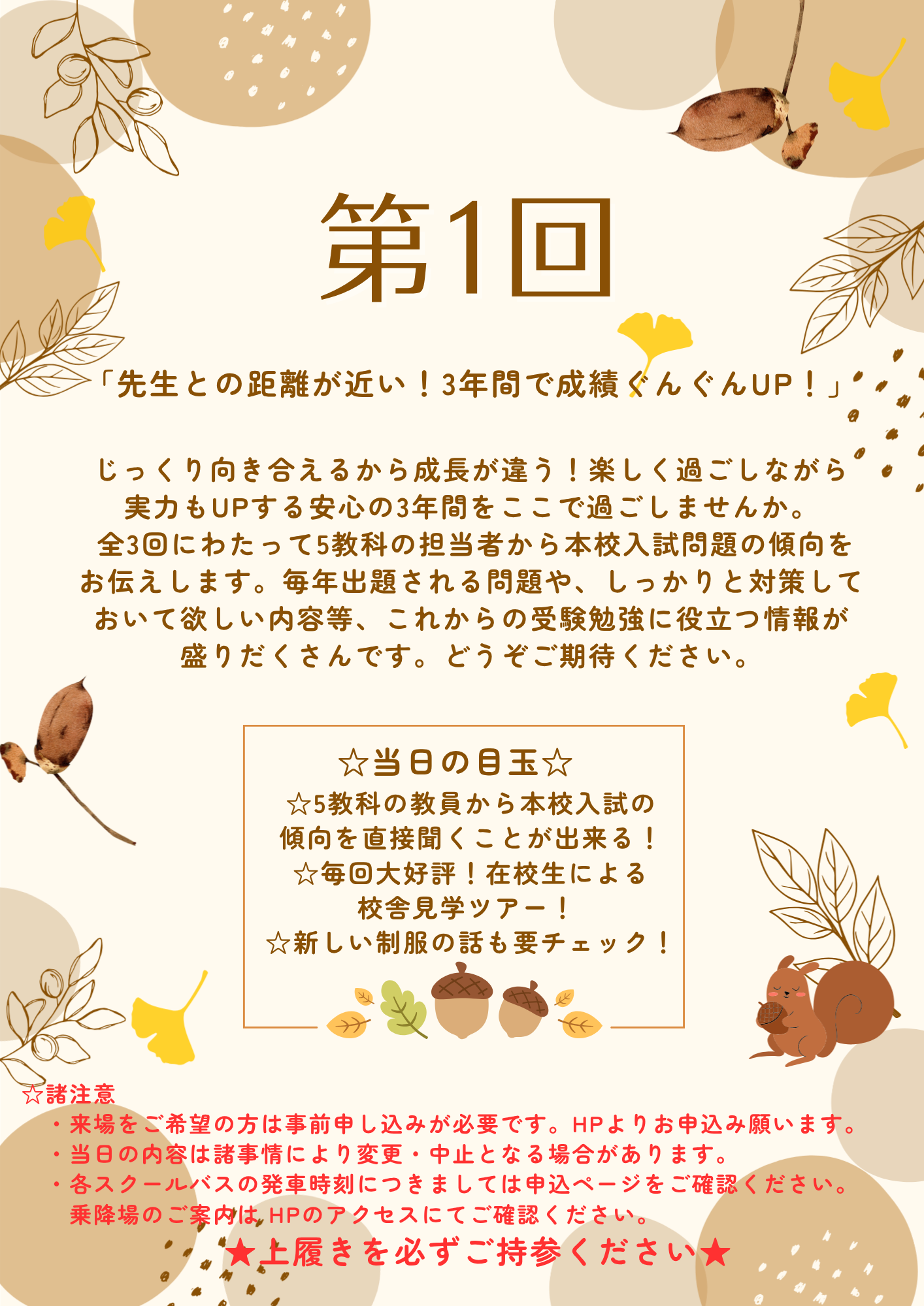 第1回入試説明会 | 中学生・保護者 | |