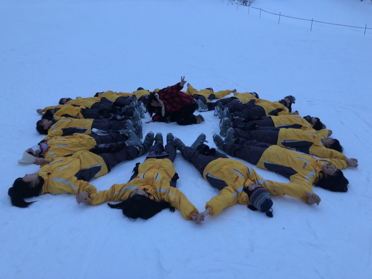 ゲレンデバックに集合写真です。