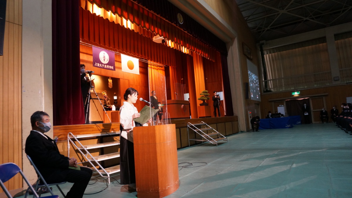 在校生は代表して生徒会役員の2人だけが出席しました。