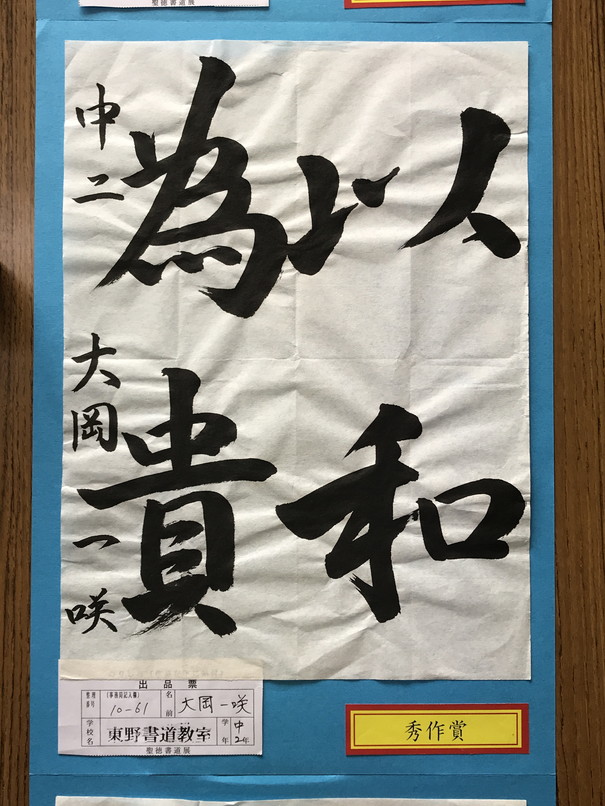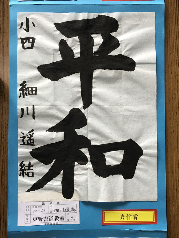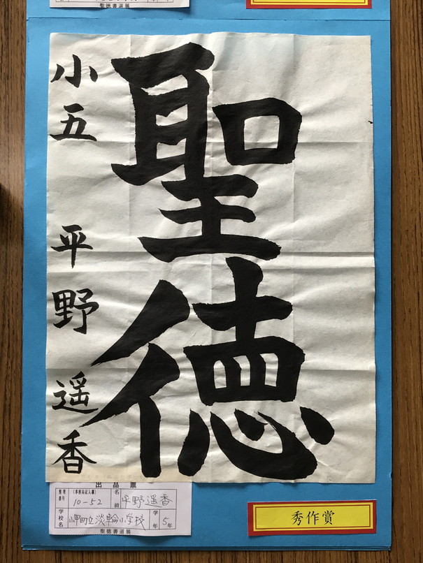 聖徳書道展初の小学校の上宮太子賞受賞者が生まれた瞬間です。何と1年生です!これをきっかけに書道が大好きになってくれればいいですね。