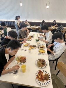 昼食はフィリピン&韓国料理のビュッフェ。