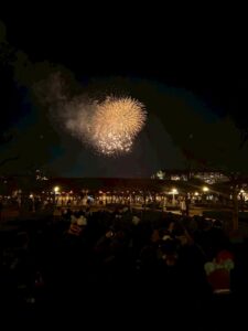 水面に映る光や音楽の演出に「綺麗…!」と感嘆の声が。