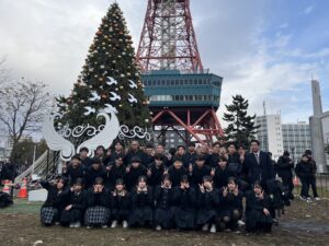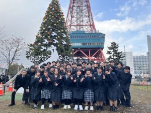 テレビ塔前でクラス写真です。
